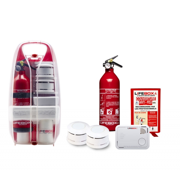 1 Extincteur à poudre ABC (tous types de feu) 1Kg avec manomètre (sans entretien), homologué et certifié CE & NF1 Détecteur de Monoxyde de Carbone CE 7 ans